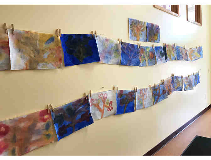 A hand-bound book of First Grade Watercolors! One painting from each student. Nature-themed. Precious.