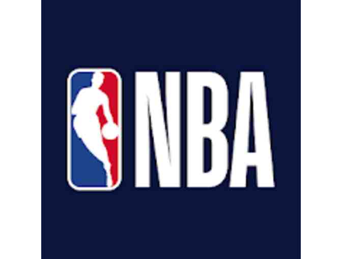 Black Leather Duffle bag filled with NBA swag which includes a dry-fit shirt, polo shirt, socks, hat, water bottle, umbrella, mobile phone charger, cross pen, spalding leather-wrapped portfolio, notebook and pin