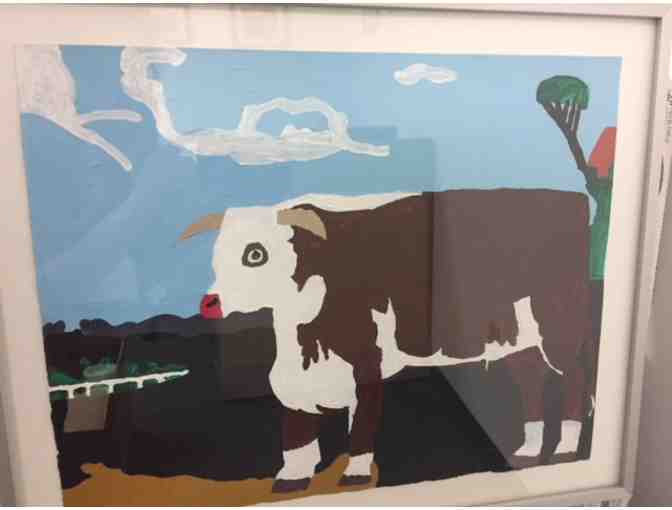 Painting of a bull by Painter Nicanor Sanchez. He hails from Gateway Arts, careers in art for people with disabilities. In the event that this item is not picked up in person, shipping & handling costs to be paid for by winning bidder.