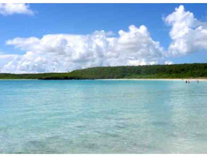 Double benefit: Supporting PYD & PR. Visit the gorgeous island that welcomes your TLC…a relaxing and/or adventurous one week stay on the breathtaking shores of Vieques Island, Puerto Rico. Enjoy seven blissful nights at La Joya De Isabel. Soak up the sun. Revel in ocean views. Sip a cold beverage and feel warm sea breezes at this island home with rooftop deck and accommodations for up to six people. Additional details: Home has two units plus rooftop deck with spectacular ocean views. The beaches are commonly listed among the top beaches in the Caribbean for their azure-colored waters and white sands. Vieques has a terrain of rolling hills. Around the coast lie palm-fringed sandy beaches interspersed with lagoons, mangroves, salt flats and coral reefs. The Bio Luminescent Bay is considered the best example of a bio-luminescent bay in the United States and is listed as a national natural landmark, one of five in Puerto Rico. The luminescence in the bay is caused by a micro-organism which glows whenever the water is disturbed, leaving a trail of neon blue. Kayaking is permitted in the bay and may be arranged through local vendors. Vieques has a warm, tropical to sub-tropical climate. Temperatures vary little throughout the year, with average daily maximum ranging from 82 °F in January to 87 °F in July. Dates subject to availability. Peruse this video to see photos of the home: https://docs.google.com/file/d/0B2MzxZIy0RNuUjdRMkk5LTBaQ1k/edit