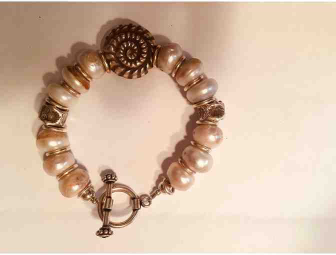 Bracelet of natural pearls with Thai sterling silver beads, spacers and findings.