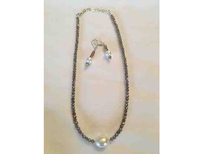 Necklace and leverback earring set. Crystals with cultured pearls and sterling silver findings. Necklace adjustable 16-18" long.