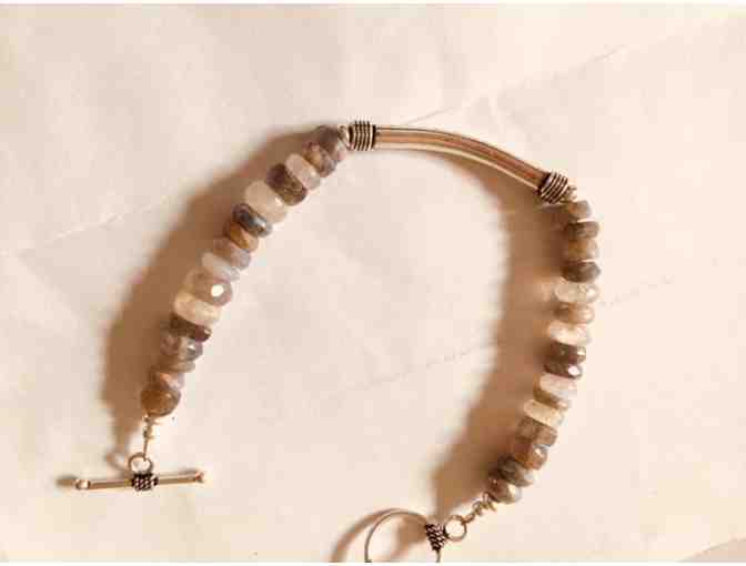 Bracelet made of color shifting labradorite with Thai sterling silver center bar and sterling silver findings.