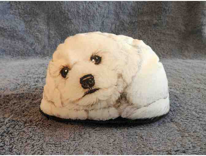 An adorable 4" soft sided Bichon to sit on top of all your papers.