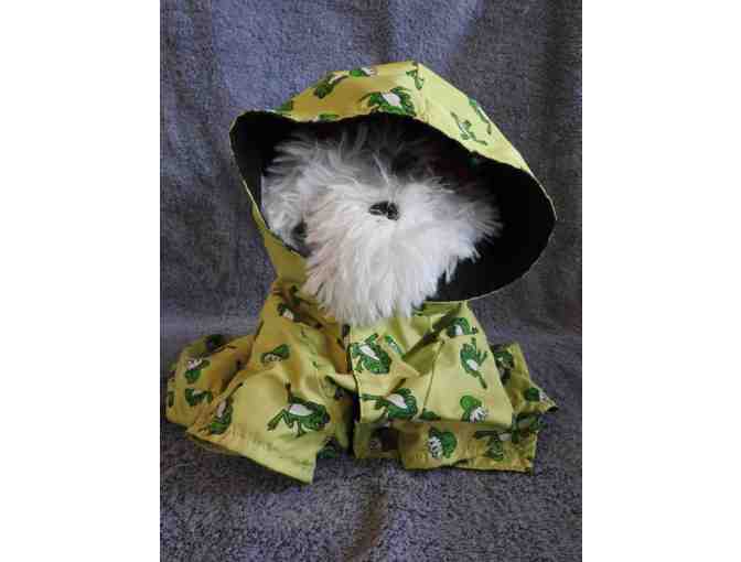 Adorable frog covered raincoat, size L, 21” around.