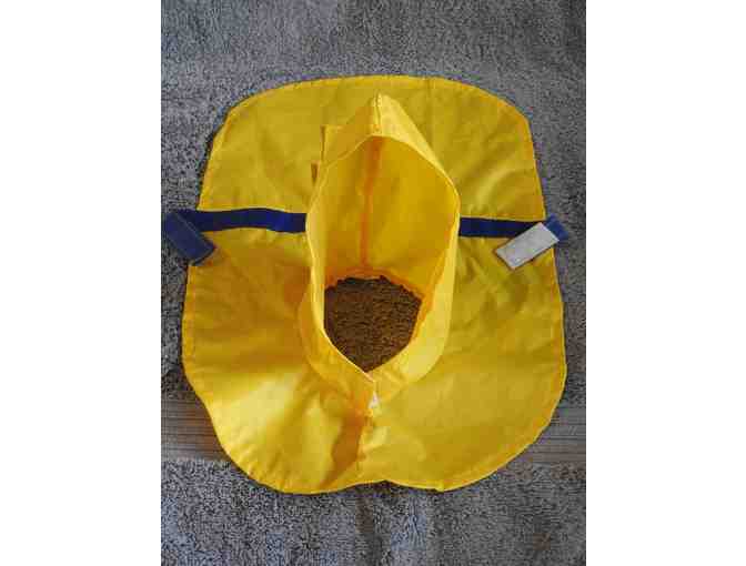 Adorable yellow raincoat, size S, cover 10”, Velcro end to end 16”