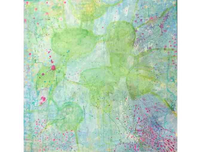 Juxtaposed to the microscopic view of my experience; Action is a macroscopic view of the complex beauty of Kyle's research. This painting seeks to show the explosion of neurons thrust into action in pursuit of delivering their message to enable mobility and thus decrease pain. I hoped to pay homage to the research while perusing the beauty of layering colours, and texture to tell this important story.