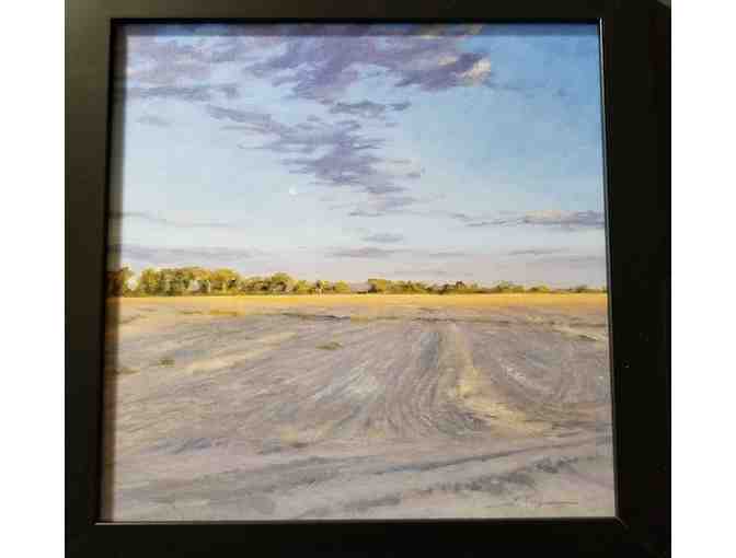 Fresno State art professor Adam Longatti is a native of the San Joaquin Valley and paints the scenes we know and love so much, so well. "Westside Sunrise" is a 12"x12" oil on canvas.
