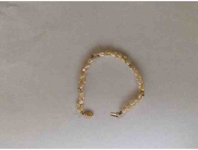 This double strand freshwater pearl bracelet measures 7" and has gold bead accents.