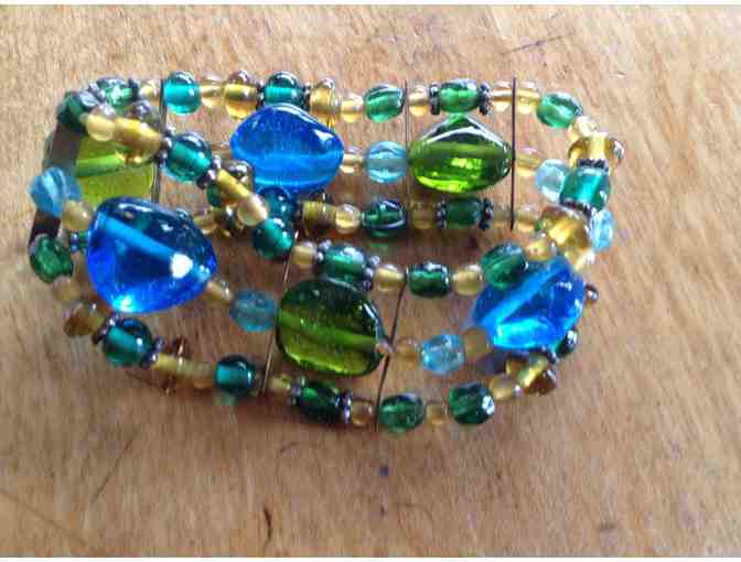 Artisan crafted glass bead stretch bracelet.