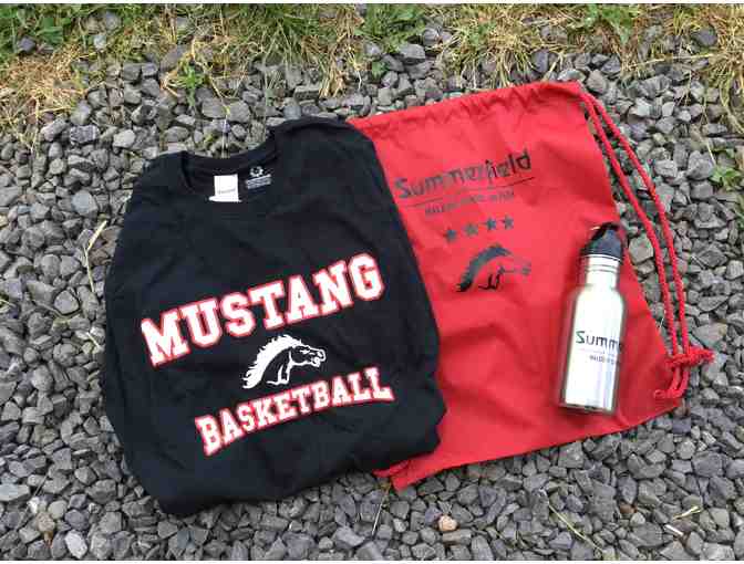 Show your Summerfield Waldorf High School pride by purchasing this fun SWSF canvas bag that contains: MUSTANG NATION bag & long sleeve t-shirt set, and stainless water bottle for your highschooler or yourself.