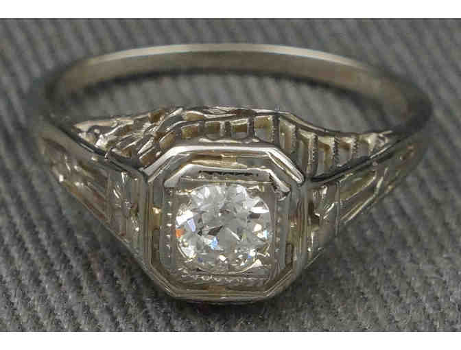 1920s Art Deco 18K White Gold & .33 ct Old Mine Cut Diamond Filigree Engagement Ring