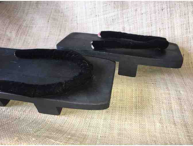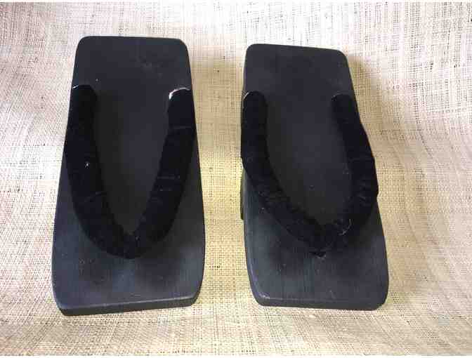 Take home a pair of these handmade Geta black sandals, traditional Japanese footwear often worn with ceremonial clothing or cultural outfits.
