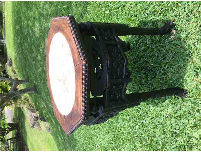 This Beautiful Marble and Rosewood Antique Side Table was made in the late 19th Century in China as a typical furniture piece designed to appeal to both Chinese buyers and to export to the west in the late 19th century.