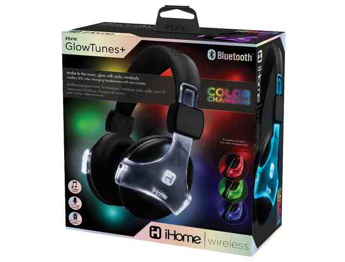 Enjoy high-quality audio from your Bluetooth-enabled device when you connect to the iHome iB91 Color-Changing Wireless Headphones, which feature a 40 mm driver and a neodymium magnet for crisp, clear sound. Time the color-changing effects with the music, select a glowing spectrum of colors or simply light up your favorite color for a fun design. An on-ear remote allows you to pause, play and skip tracks, and the echo-cancelling microphone lets you answer and end calls without reaching for your device. Attach the included 72" cable for simple wired listening, and adjust the padded headband for your comfort.