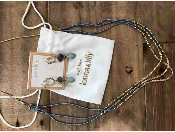 Beautiful turquoise and blue triple strand necklace & matching earring by Lonna & Lilly.