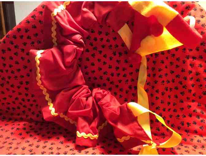 All costumes are one size fits all Bichons and are so very cute. All costumes are hand made by Mrs. Nibbles who resides in England.