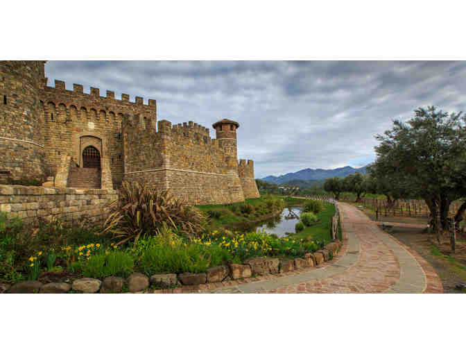 This is a guided tasting and tour for four of the Castello di Amorosa in Calistoga. Dario Sattui's authentically-built 13th century Tuscan castle, offers guests the opportunity to explore the extensive grounds of the 136,000 square foot structure. The grounds range from sweeping vineyard vistas from atop the truncated tower, to a look into the roughly 900 feet of caves that wind underneath the adjacent hillsides, and even a peek inside the torture chamber. The tour concludes in a private tasting room, where you and your guests can sample a wide array of award-winning wines offered at the Castello, all crafted in the Italian Style and available only at the winery.