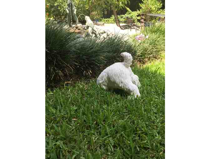 This white fluff is not quite on an archaeological dig, but he just may be "in over his head" as he scouts for buried treasure - or that lost bone! This humorous "white dog" statue only is the "back end", leaving the rest of the sculpture to your imagination. This Toscano-exclusive is cast in quality designer resin with hand-painted detail.
