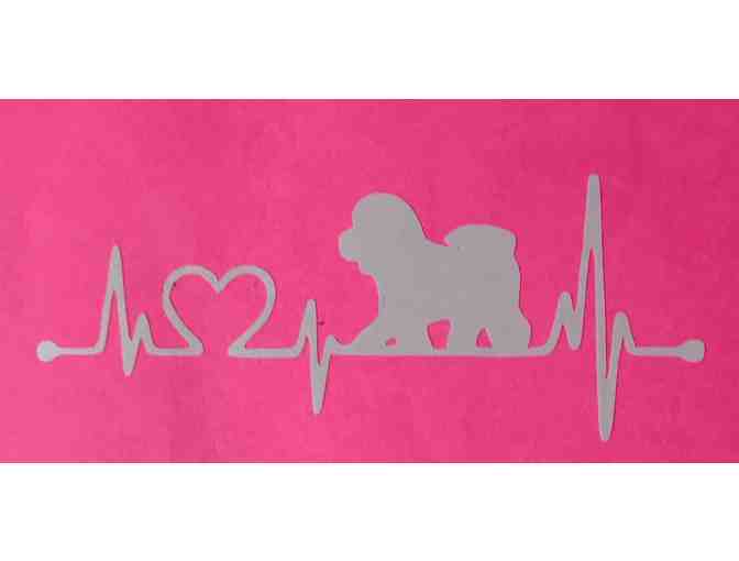 Show your love of your Bichon Frise with this cute white walking Bichon on a heartbeat Window Decal.