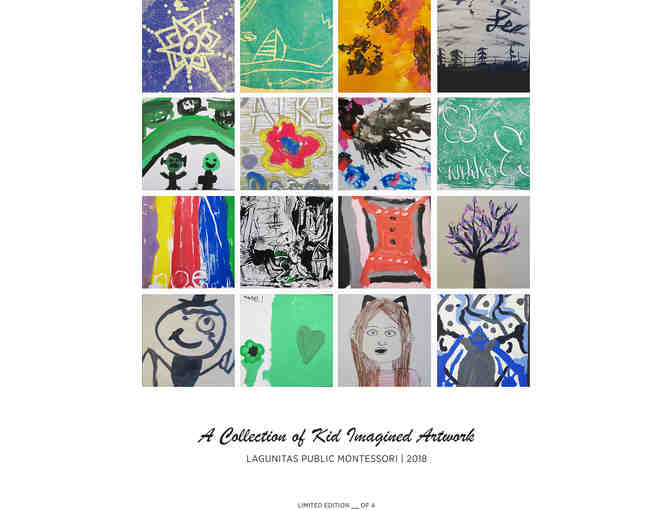 A framed limited edition poster of 'Kid Imagined Artwork' created by students in the Montessori program. There are only 4 of these posters being made. The dimensions are 18x24 inches.