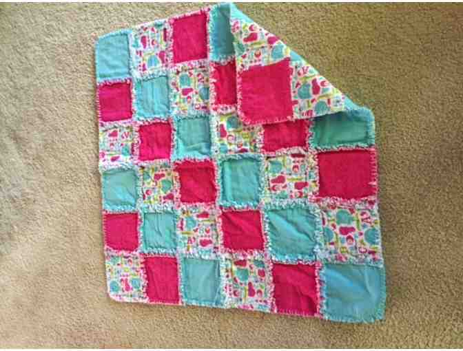 New handmade pink and turquoise baby or child quilt made with 3 layers of flannel.