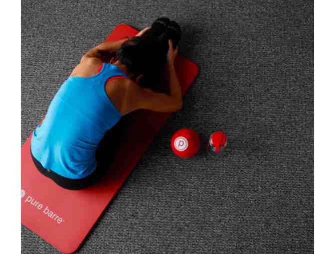 Five class pack for Pure Barre. Each Pure Barre class is 55 minutes and begins with a warm-up in the center of the room, on the floor, and then standing with light weights to work those arm muscles. Then students move to the barre to work their thighs and seat. After the seat work, there are a series of ab exercises, followed by a cool down.