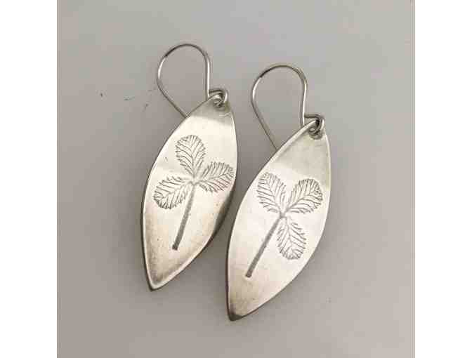 One-of-a-kind Patterson Park clover impression earrings in sterling silver! Beautiful dangling 3/4" inch earrings with sterling silver ear hooks.