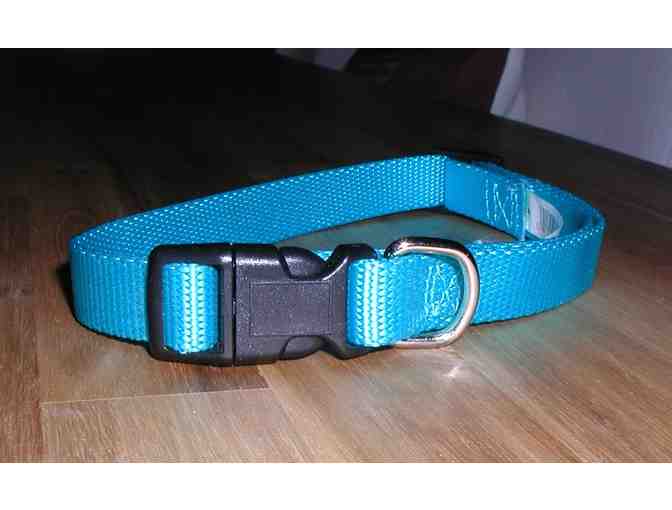 Medium size teal color dog collar. Adjustable.