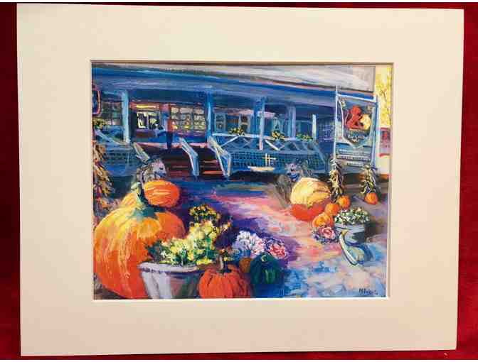 "Lions & Pumpkins" Red Lion Inn Stockbridge, MA original 14" x 11" print w/matt by Margaret Buchte.