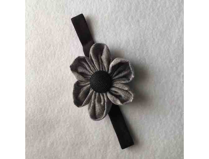 New Custom Handmade Fabric Flower on a FOE elastic headband. Fits babies / girls.