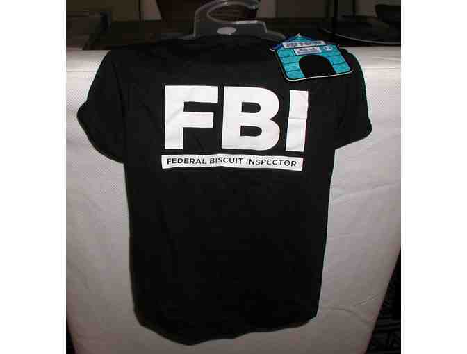 FBI - Federal Biscuit Inspector Doggie T-shirt. Size Large - BUT IT RUNS SMALL!Would probably fit a small Yorkie or Maltese size doggie. Brand new with tags!