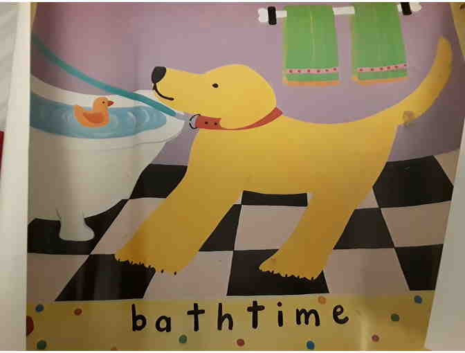 Poster of dog at bathtime Not framed 20 x 16 in size