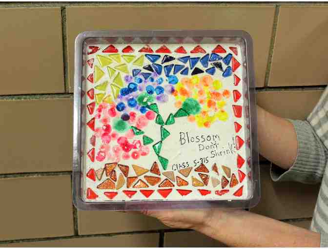 Class 5-315 created a Stepping Stone Mosaic recreating the reading garden we have in front of our school. One of our class motto's is "Blossom Don't Shrink!", just like flowers in a garden. The petals were created by the children dipping their fingertips into a variety of colors , which represent the diversity of our school and the 5th graders passing the torch to the younger students.