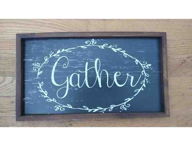 Wooden Hanging "Gather" sign