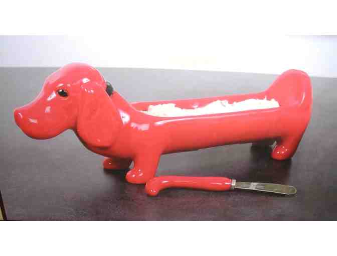 Ceramic Dog Tray with Tail Spreader. Hold crackers, condiments, or your favorite dip. New in box.