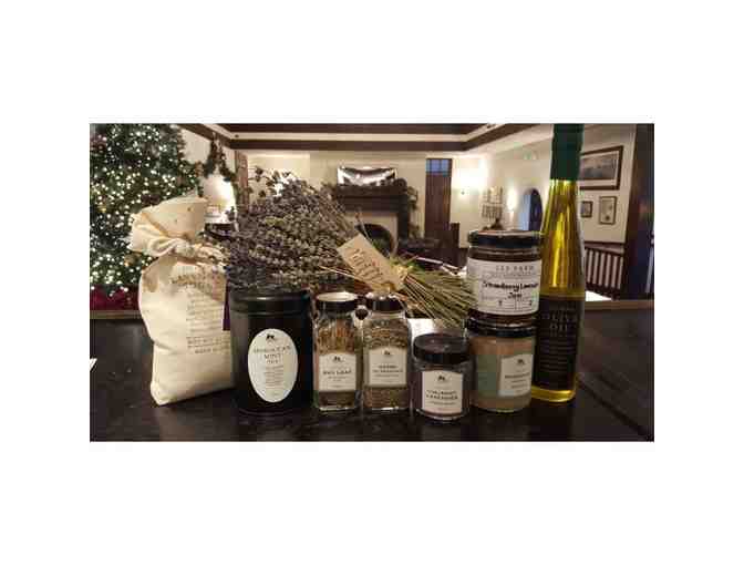 The culinary package includes an assortment of organically grown herbs, jam, and olive oil from historic Highland Springs Ranch in Southern California and Paso Robles.