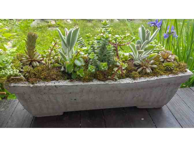 Enjoy a handcrafted cement, trough-style pot with succulents from Mod Pots & Plants.