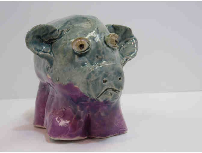 Created by INSIGHT client Richard at our spring ceramics workshop, this handmade piggy bank is looking stylish in his purple pants!