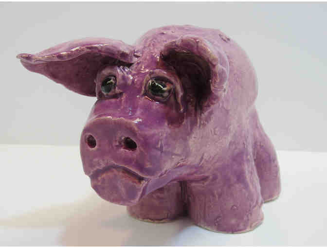 Created by INSIGHT client Tom at our spring ceramics workshop, this handmade piggy bank looks like he is in deep thought - maybe thinking about how to spend all of the money you will feed him!