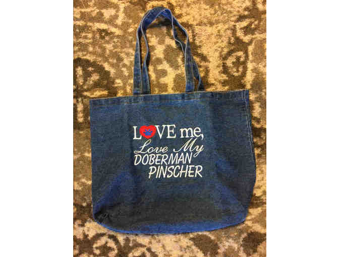 A nice heavy weight blue denim tote bag - embroidered on the one side. Good large tote - 18" wide by 15" deep