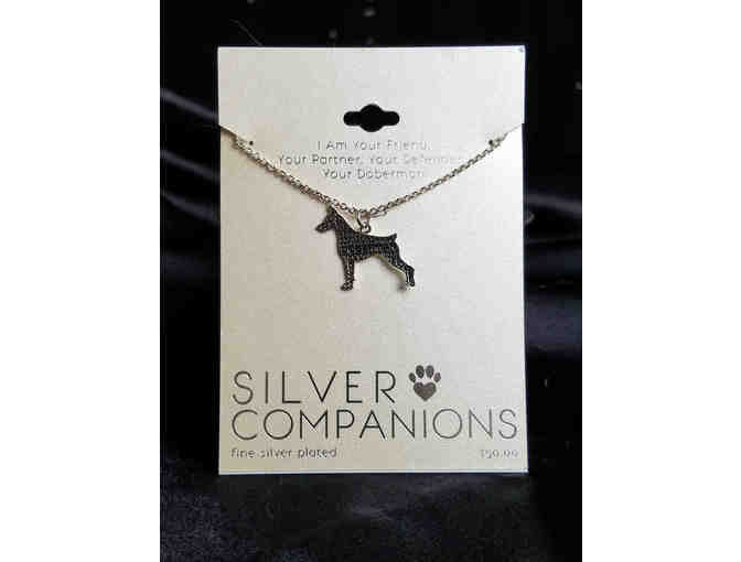 You are bidding on a very attractive silver plated Doberman charm from "Silver Companions" - impressed with good thoughts it is on a silver plated chain.