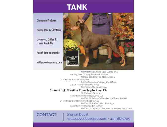 Disclaimer: The DPCA makes no representations of any kind related to the dogs offered here. Bidder understands that the stud dog owners are merely contributing here to the greater good of this DPCA Committee.