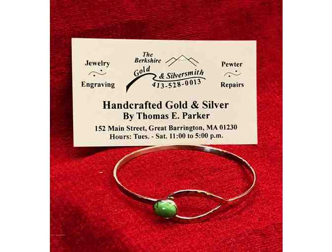 Handcrafted mojave green/turquoise & silver bracelet from the Berkshire Gold & Silversmith.