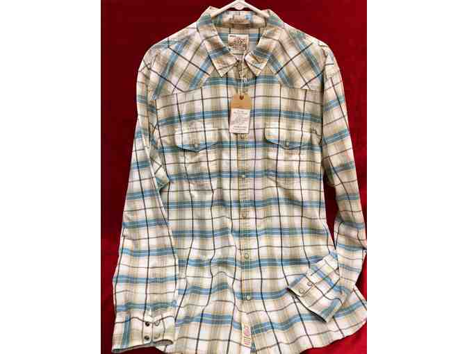 Luck Brand men's XXL long sleeved, 100% cotton, plaid, western style shirt w/snaps donated by Mainstreet Clothing.