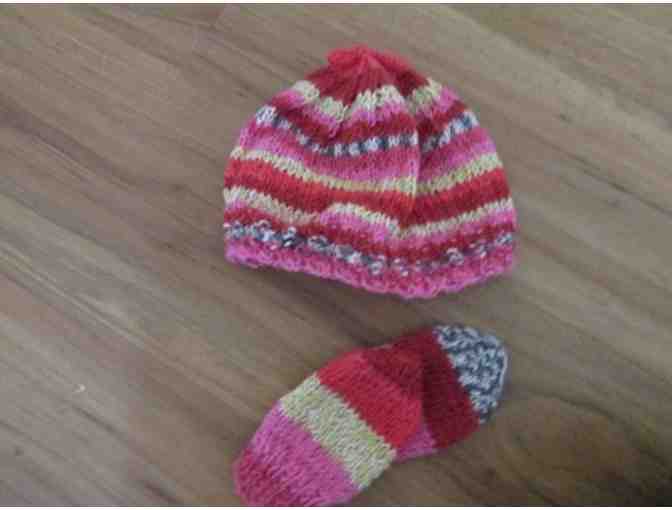 Hand knitted Infant hat and MItten Set