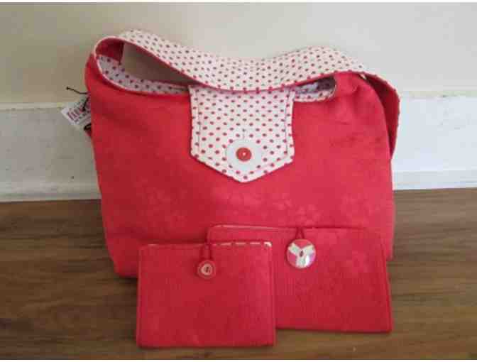 Fabric handbag, Wallet, and Checkbook Set by: Pamela Farnsworth Handbags