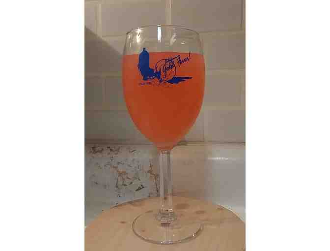You are bidding on one wine glass from the 1998 DPCA Nationals printed "California Gold Fever". Sorry, the watermelon wine is NOT included.