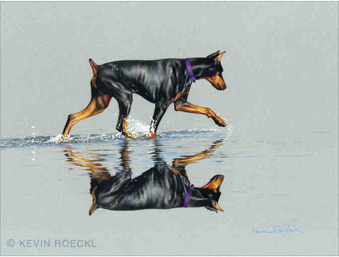 This is only the second print ever released of “Looking For Fish”, an exclusive, Limited Edition, Fine Art print by noted Doberman artist, Kevin Roeckl.