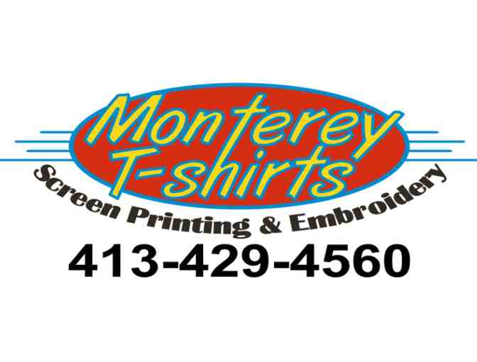 Monterey T-shirts Screen Printing & Embroidery. We have a large selection of products for everyone and all occasions. We are a growing company in the Berkshires. We are dedicated to bringing quality customer service and top of the line products to your business or personal use. Whether in Monterey, Ma. or elsewhere in the Berkshires, we can serve your needs.We realize time is money so we offer free local delivery.